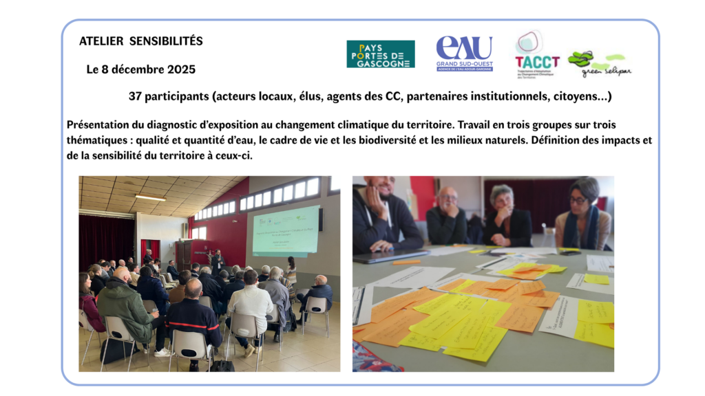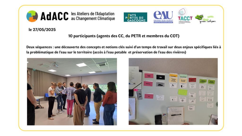 L’ensemble de la démarche repose sur une forte dynamique de co-construction, favorisant l’appropriation collective, la sensibilisation et la mobilisation des acteurs du territoire face aux enjeux de l’adaptation climatique.